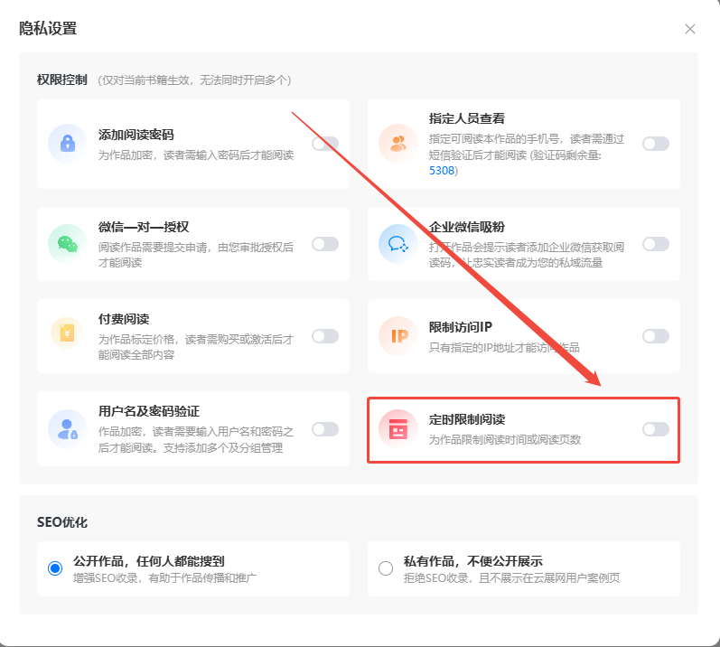 點擊【文檔】,找到電子畫冊再點擊【隱私設置】,開啟【定時限制閱讀】。