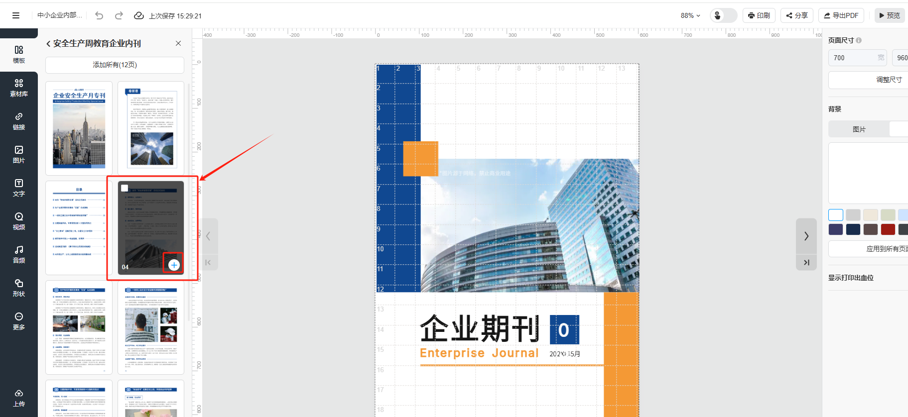 (2)選擇一款合適的模板點(diǎn)擊打開,挑選出想要的某一頁,點(diǎn)擊【+】號