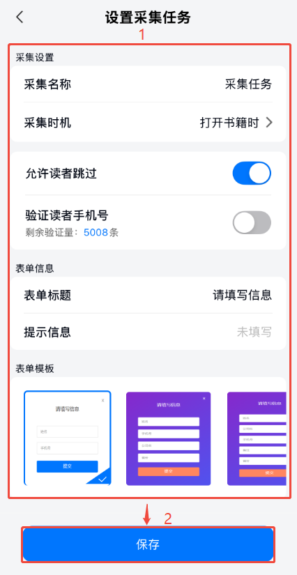 設(shè)置采集信息,選擇好模板之后,點(diǎn)擊【保存】即可。