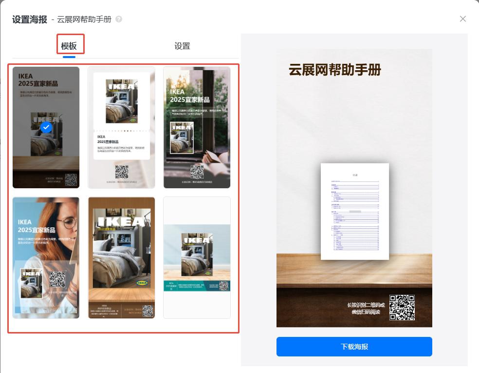 點(diǎn)擊【文檔】,然后點(diǎn)擊對(duì)應(yīng)電子書(shū)的右邊三個(gè)點(diǎn),再點(diǎn)擊【推廣】,最后點(diǎn)擊【生成海報(bào)】。