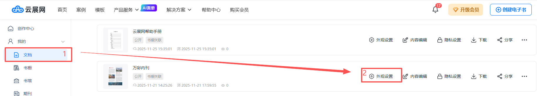 點(diǎn)擊【文檔】,找到需要設(shè)置的書本,點(diǎn)擊【外觀設(shè)置】。