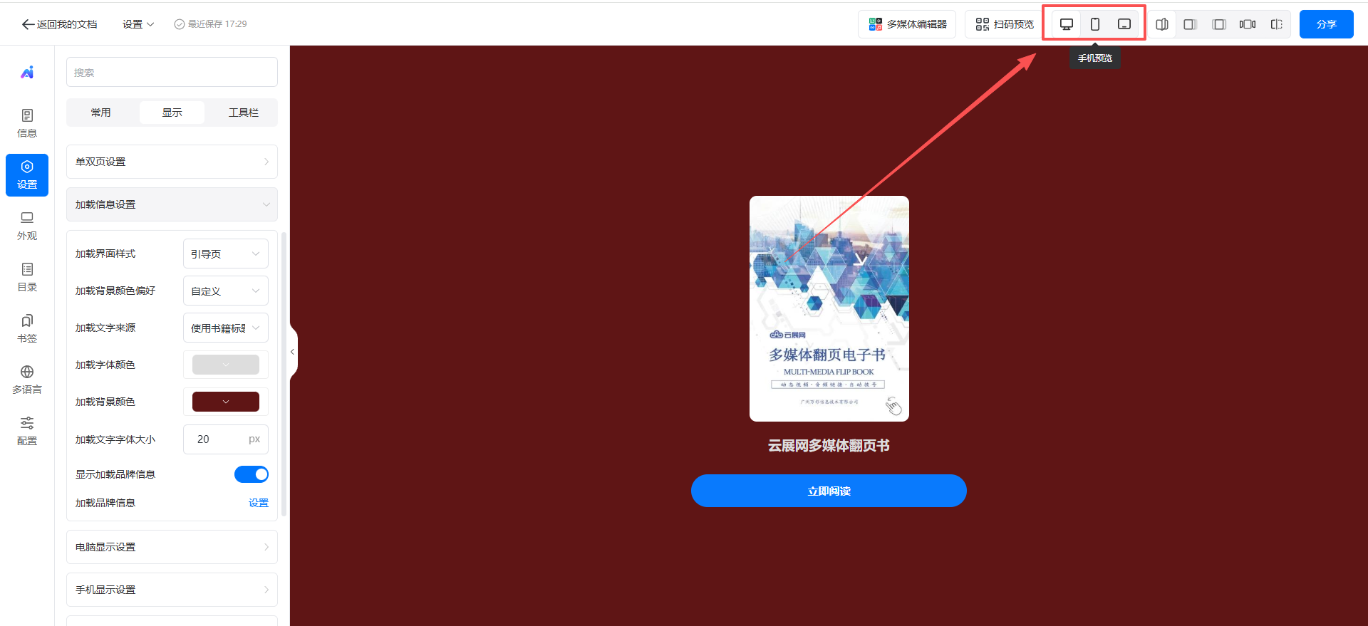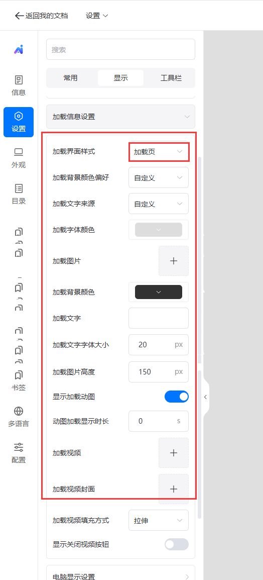 用戶可以自定義設(shè)置電子書加載頁(yè)面的文字,圖片、和添加視頻作為開(kāi)場(chǎng)介紹,還可以在加載頁(yè)面上展示自己的品牌信息,實(shí)現(xiàn)個(gè)性化展示和品牌推廣。