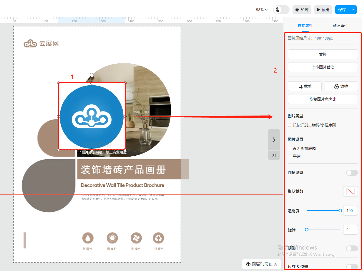 點(diǎn)擊頁面上的圖片,在右側(cè)設(shè)置樣式屬性。