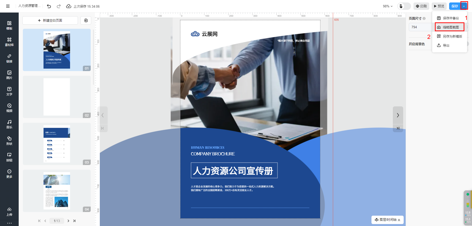 點擊保存右側(cè)下拉鍵,選擇【縮略圖截圖】。