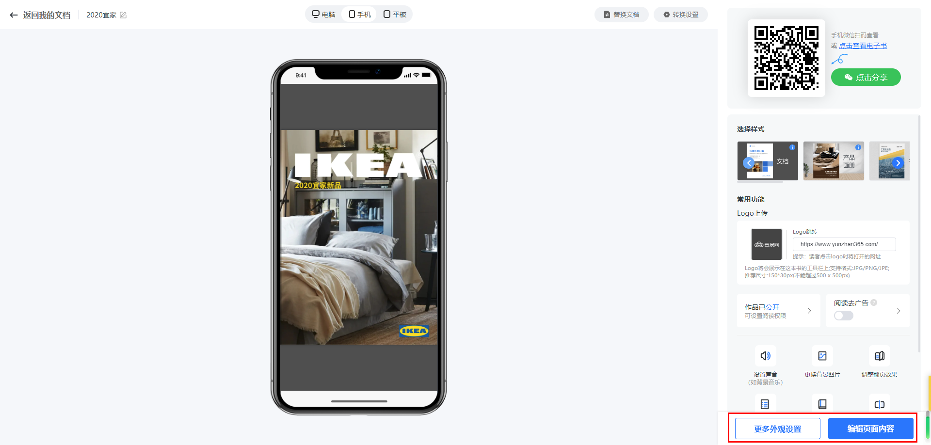 關(guān)于再次編輯雜志,在【文檔頁面】,點(diǎn)擊【外觀設(shè)置】按鈕,如圖操作: