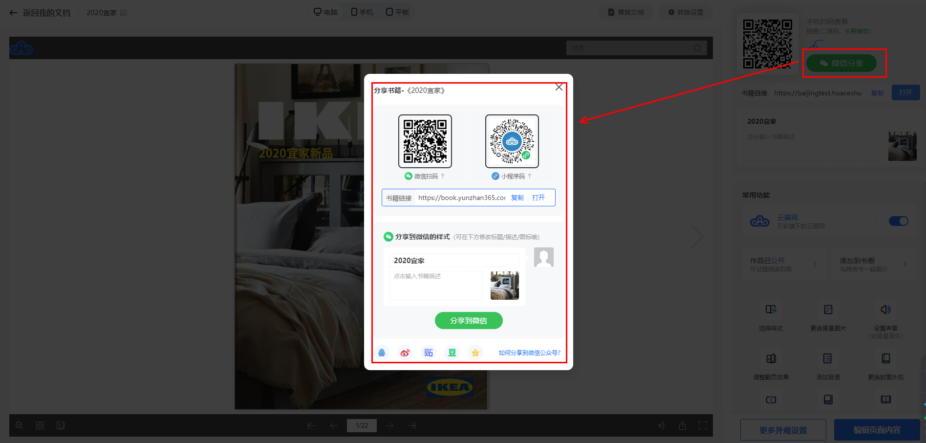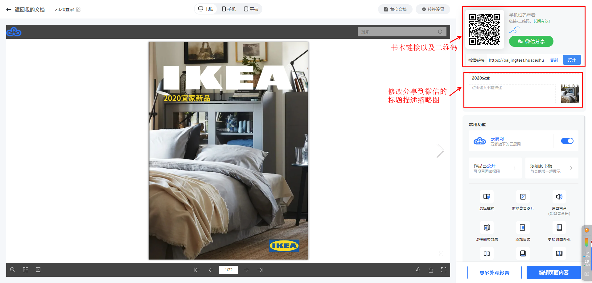 上傳成功以后生成的書本鏈接以及二維碼可以用于網(wǎng)站,微信(包含朋友圈,好友,微信群,公眾號(hào)),QQ郵箱等發(fā)布。