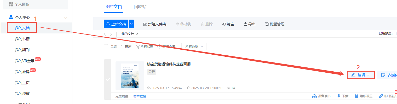 點(diǎn)擊【我的文檔】,然后點(diǎn)擊【編輯】,打開(kāi)編輯界面。