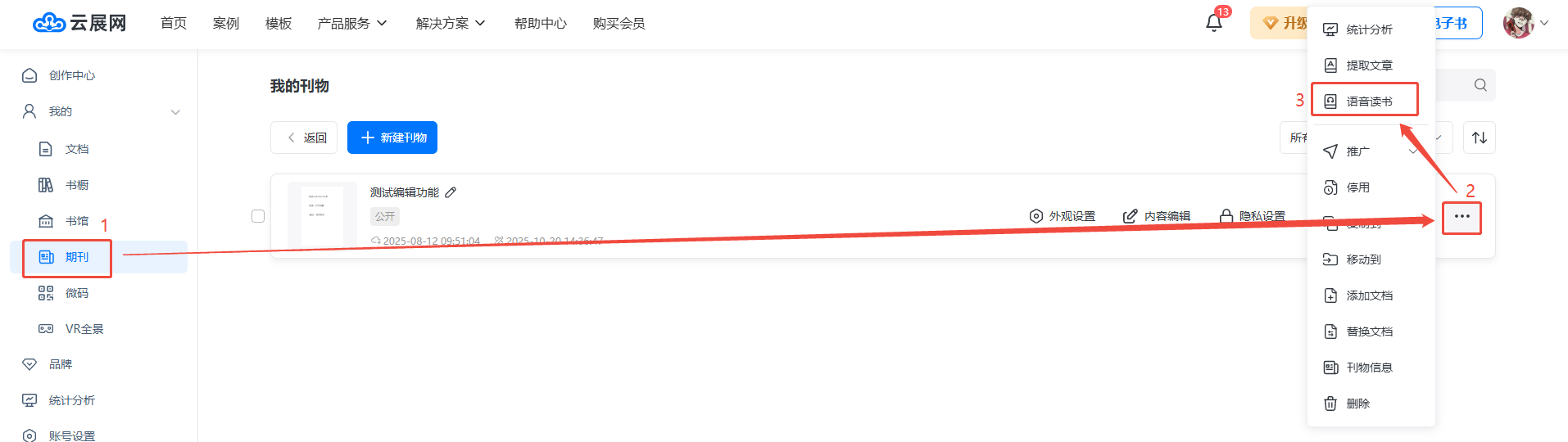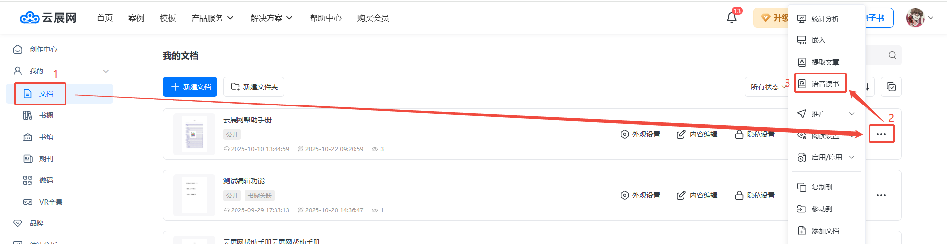 點(diǎn)擊【文檔】或【期刊】找到需要設(shè)置的書(shū),點(diǎn)擊右方三個(gè)點(diǎn),然后點(diǎn)擊【語(yǔ)音讀書(shū)】。