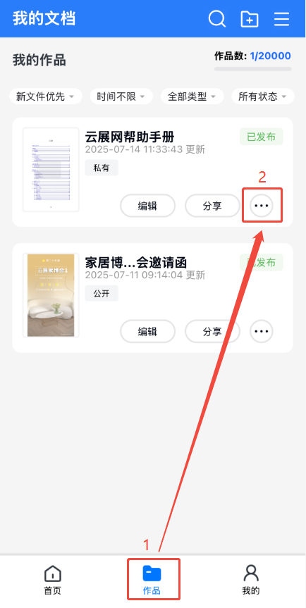 點(diǎn)擊【作品】,點(diǎn)擊對(duì)應(yīng)電子書(shū)右邊的三個(gè)點(diǎn),然后點(diǎn)擊【替換/添加文檔】,打開(kāi)替換文檔界面。
