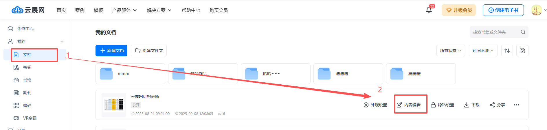 1、在【文檔】頁面,點擊【內(nèi)容編輯】打開。