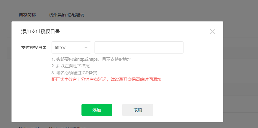 2)設(shè)置支付配置:JSAPI支付,點(diǎn)擊添加支付授權(quán)目錄