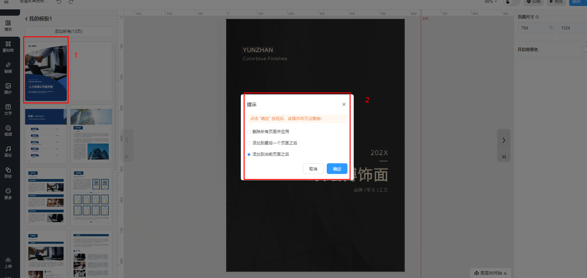 注意:1.應用模板的操作無法撤銷,要確定無誤后再操作。
