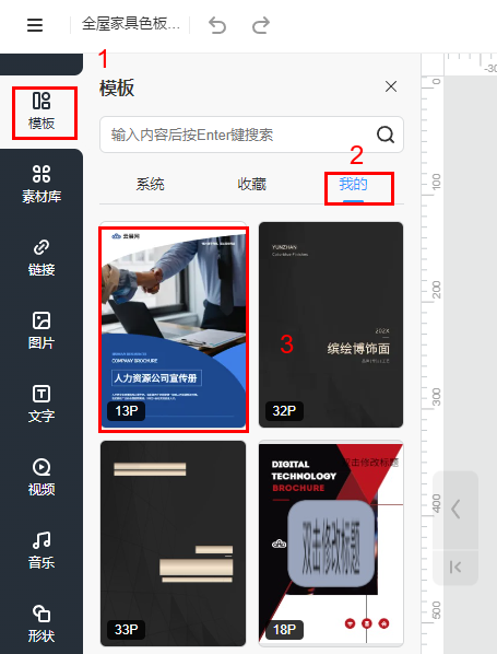 (2)點擊【模板】,【我的】,找到你要應用的模板