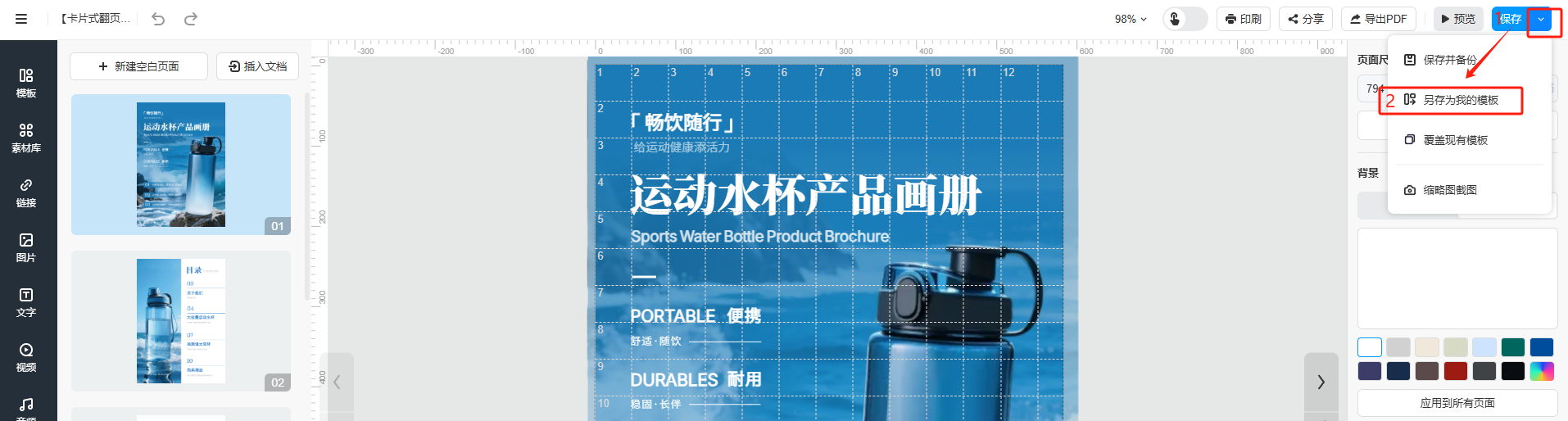 當新書只需要在舊書的基礎上更換文字和素材時,如何提高效率?可以將舊書另存為模板,并直接創(chuàng)建成一本新書,或者直接應用模板中的某個頁面,避免重復工作,提高效率!