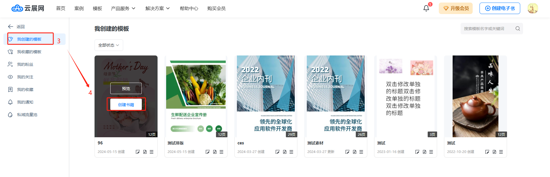 (4)另存的新模板會保存在【我的模板】/【我創(chuàng)建的模板】中,如果需要使用該模板進行制作,則點擊【創(chuàng)建書籍】即可