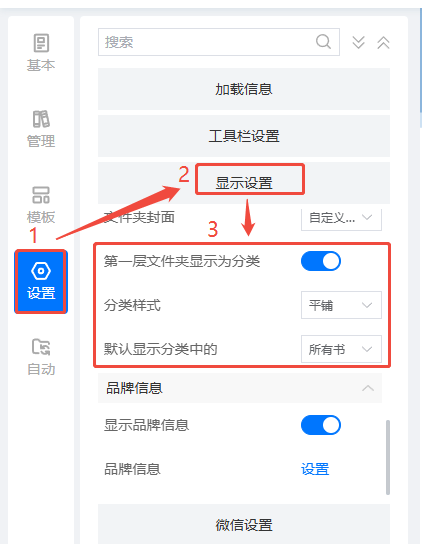 點(diǎn)擊【設(shè)置】,打開【顯示設(shè)置】,找到并打開【第一層文件夾顯示為分類】。