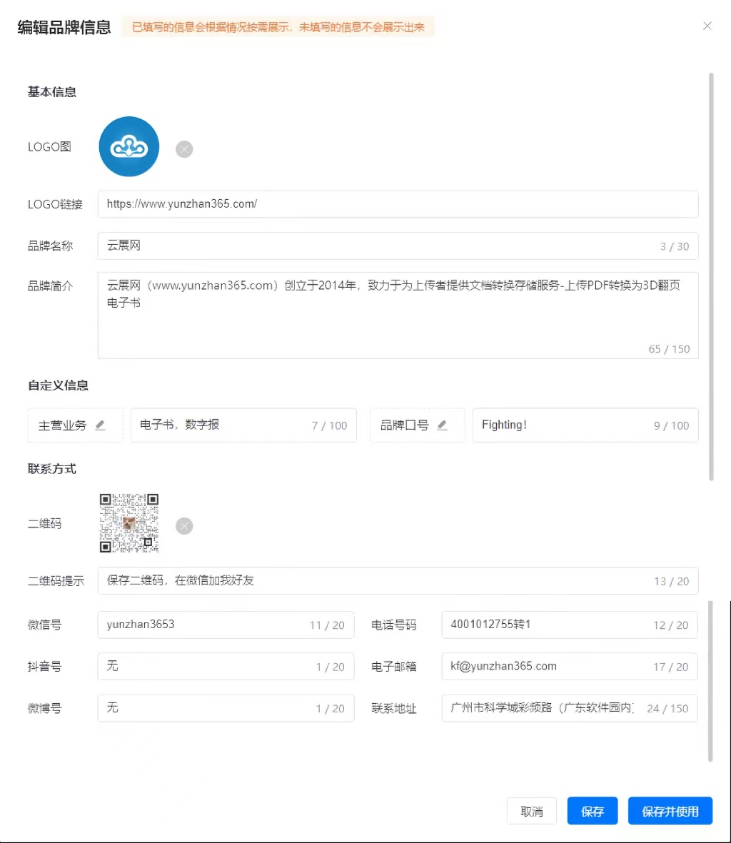 3)提高品牌的宣傳推廣力度,設(shè)置品牌信息,可以讓讀者了解品牌的基本信息,快速獲取聯(lián)系方式。