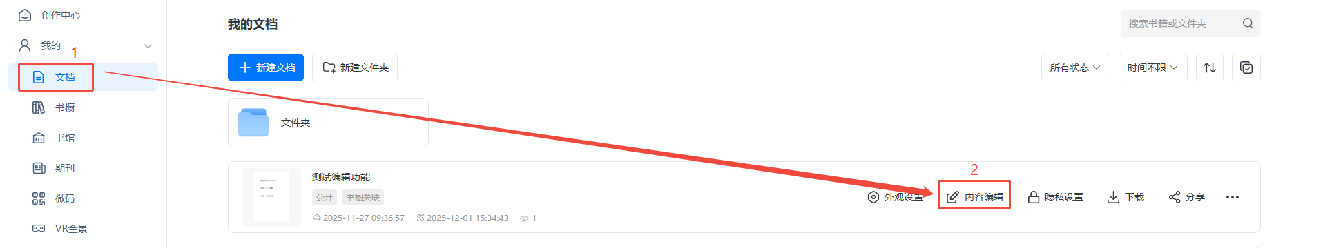 點進【文檔】,選擇對應電子書,點擊【內容編輯】。