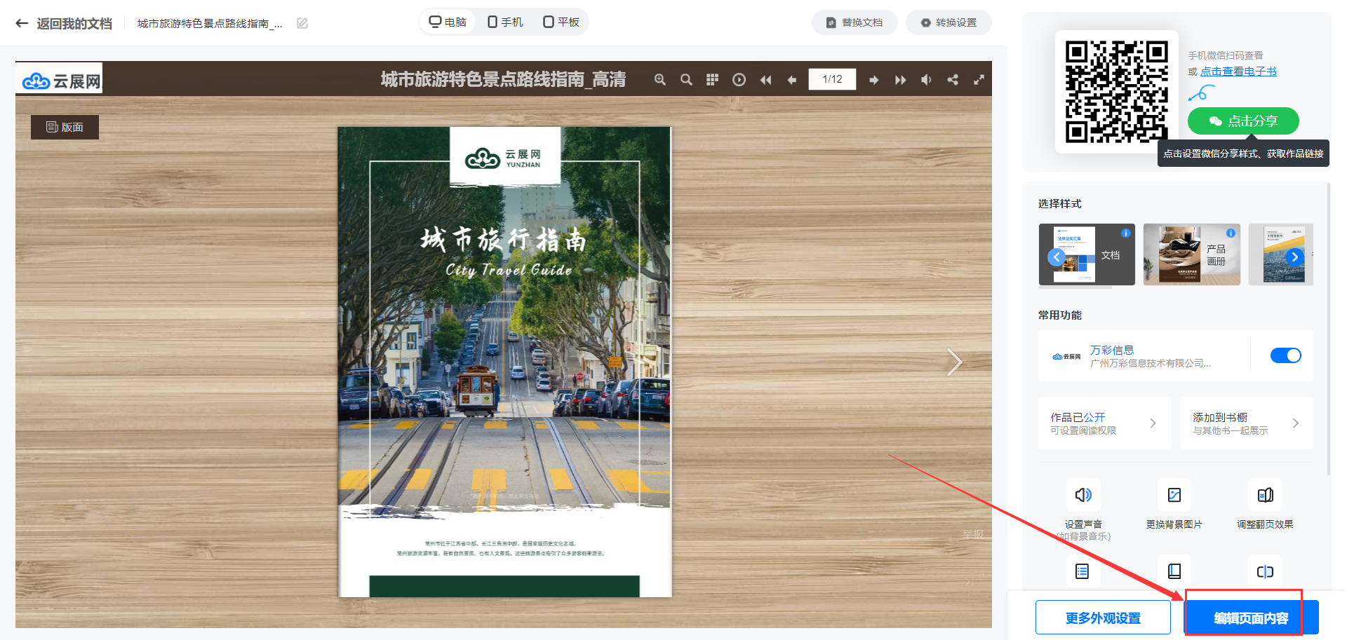 當(dāng)你上傳文檔,轉(zhuǎn)換生成電子書后,點(diǎn)擊【編輯頁(yè)面內(nèi)容】也可以在這里打開多媒體編輯器。