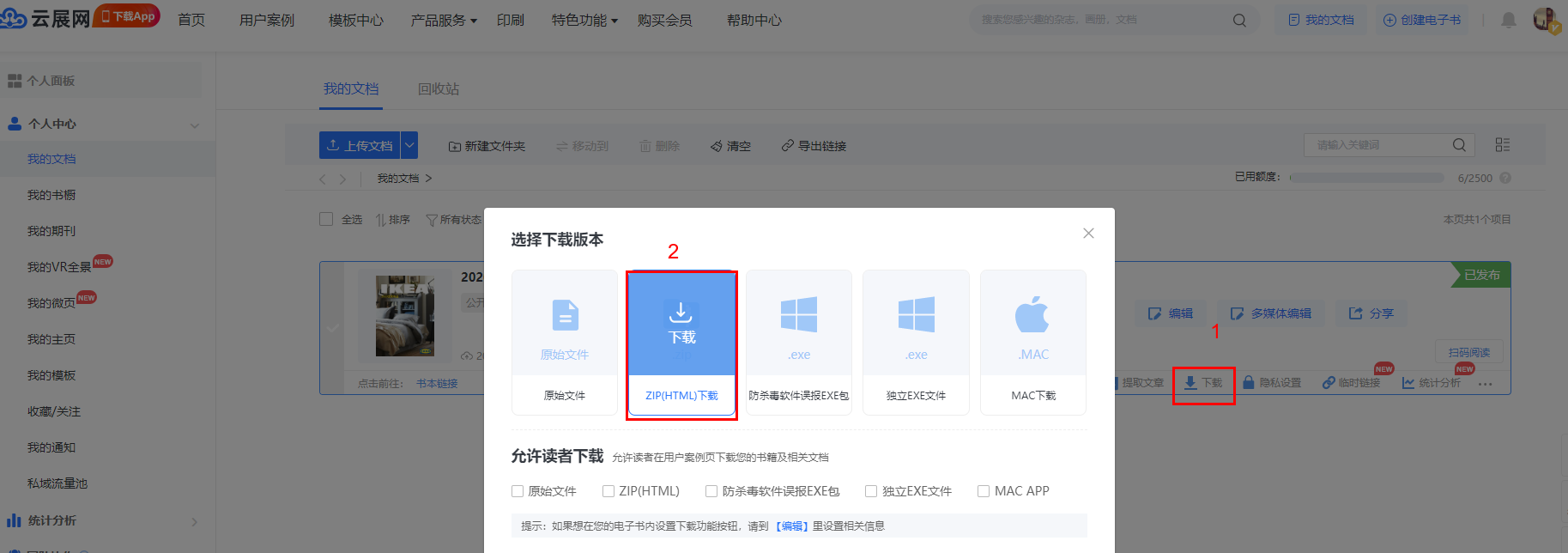 方法二:付費會員可以下載自己上傳的雜志上傳到自己的網(wǎng)站服務空間使用。