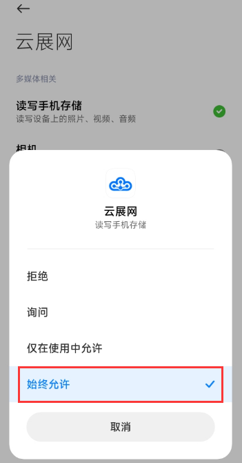 可能是app向您申請(qǐng)存儲(chǔ)訪問(wèn)權(quán)限時(shí),您拒絕過(guò),重新打開(kāi)權(quán)限即可,請(qǐng)看如下操作: