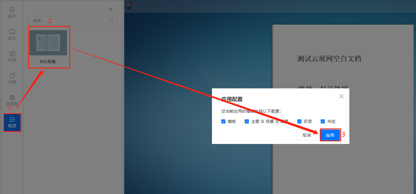 (2)點擊【配置】,單擊保存的配置,點擊【應(yīng)用】,書本便會應(yīng)用保存的配置。
