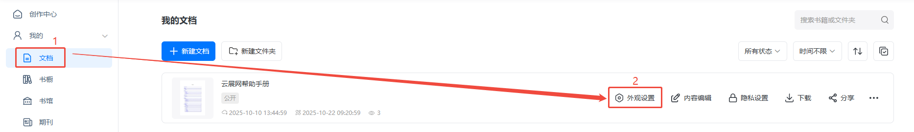在【文檔】找到需要設(shè)置的電子書,點擊【外觀設(shè)置】進(jìn)入。