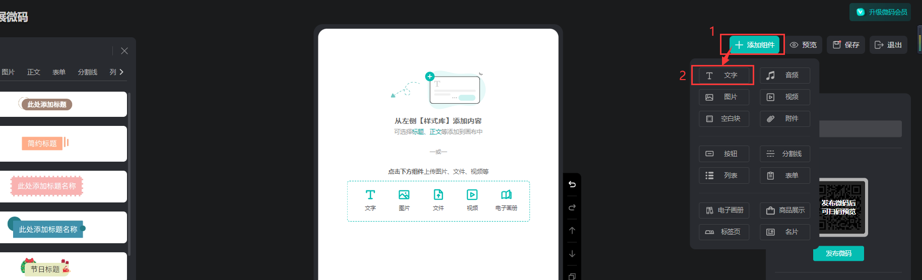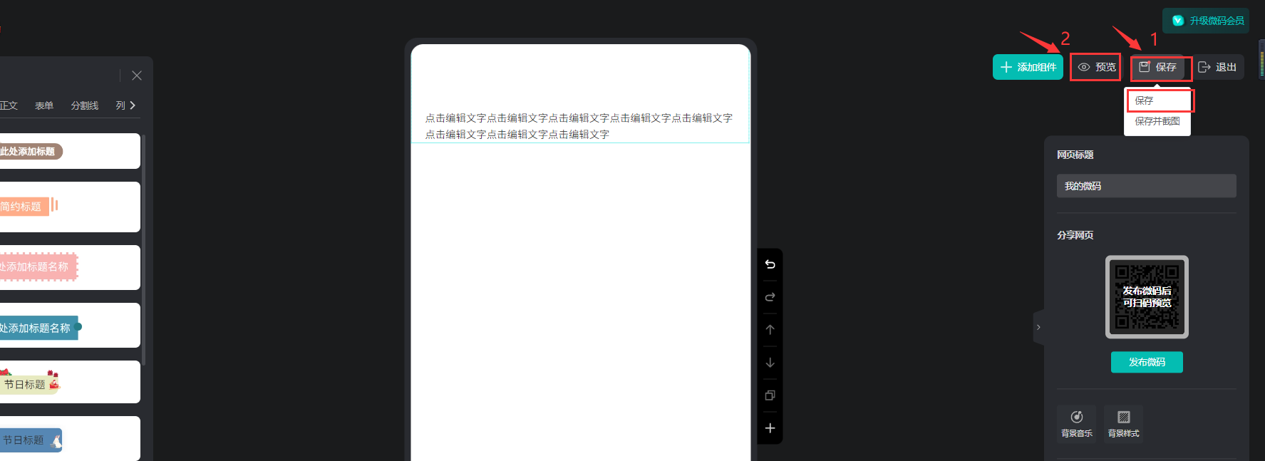 微碼可以自定義添加文字排版,設(shè)計(jì)個(gè)性化頁(yè)面布局。