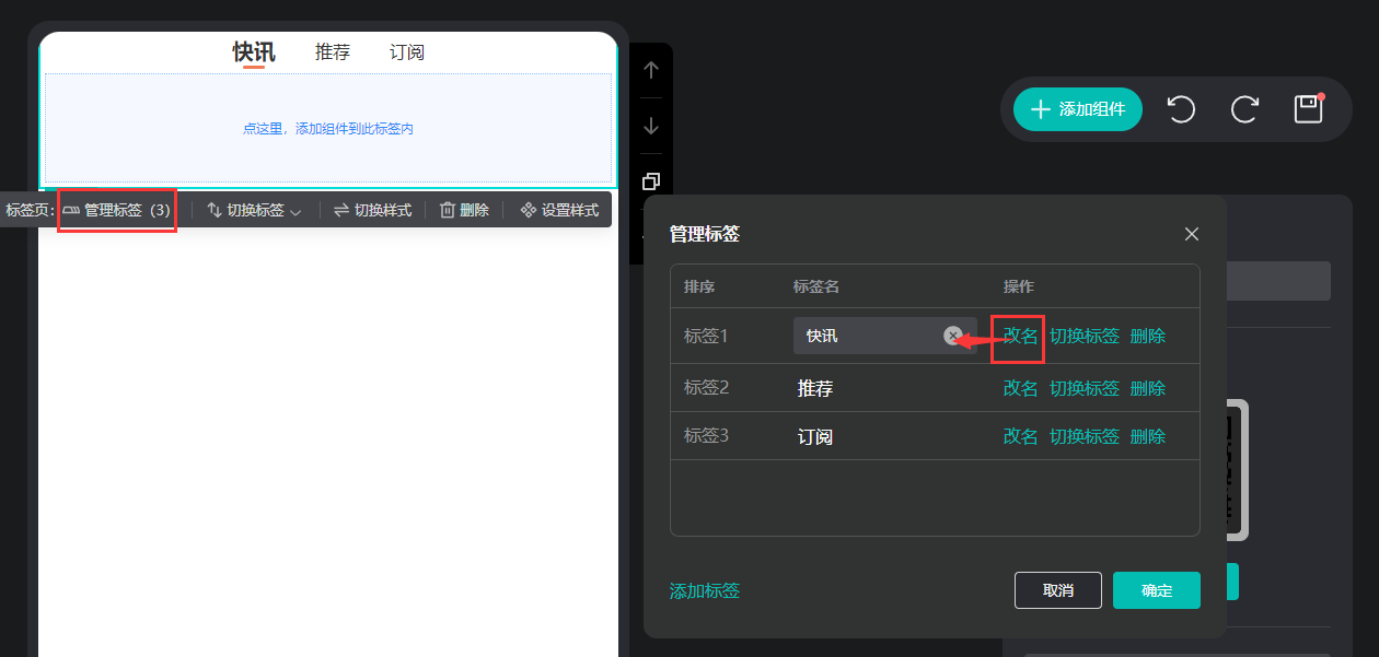 點擊 【管理標(biāo)簽】,點擊【改名】,編輯標(biāo)簽名。