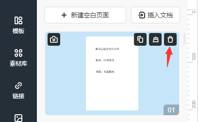 成功插入新文件之后,將鼠標移動到左邊舊頁面的縮略圖上點擊垃圾桶圖標,刪除舊頁面。