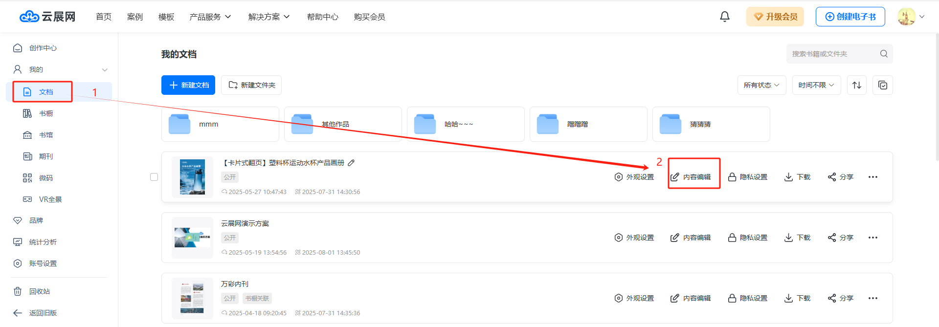 點進【文檔】,選擇需要替換頁面的書本,點擊【內(nèi)容編輯】。