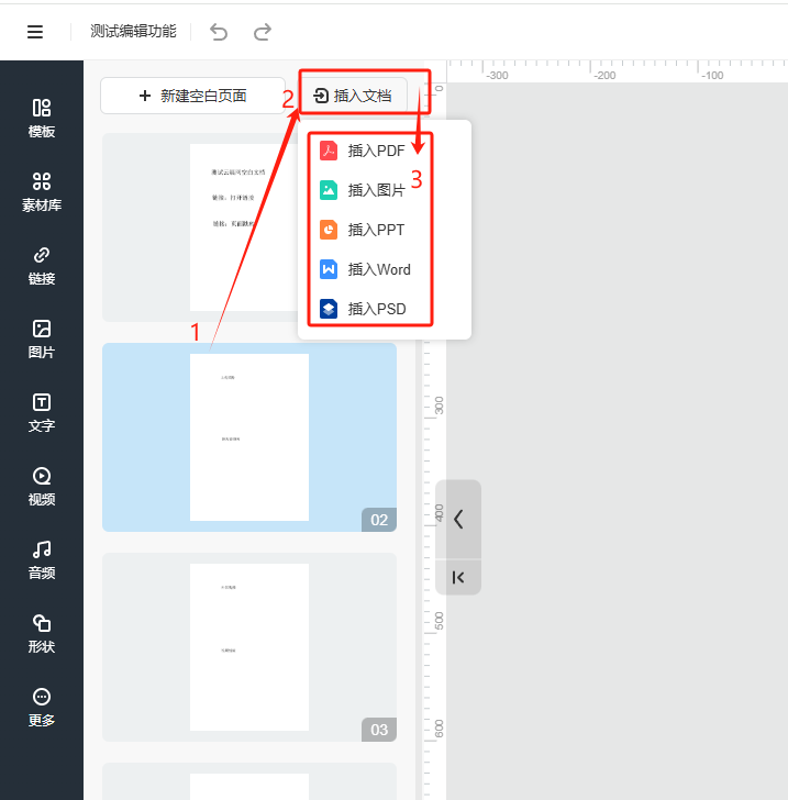 選擇需要替換的頁面,點擊【插入文檔】,選擇要插入的文件類型,然后點擊選擇文件上傳新文件,再選擇需要插入的文件進行轉(zhuǎn)換。