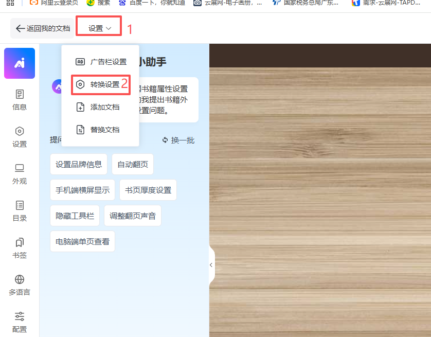 a)點(diǎn)擊左上角【設(shè)置】,然后點(diǎn)擊【轉(zhuǎn)換設(shè)置】。