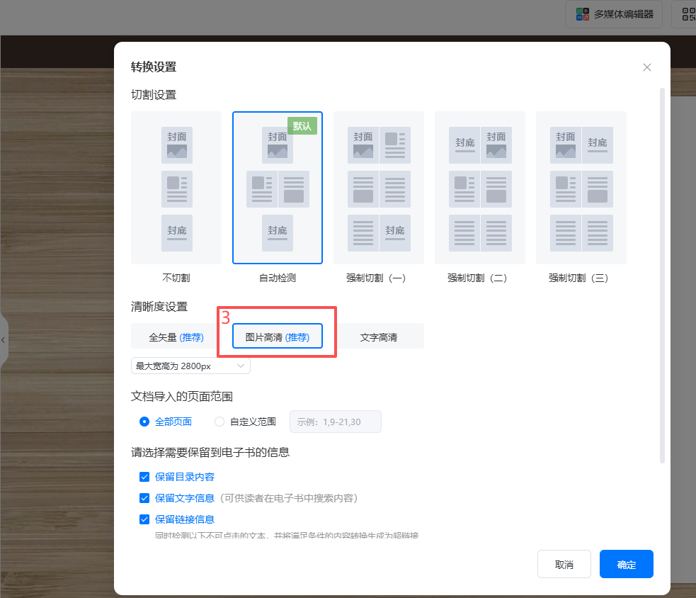 b)【清晰度設(shè)置】選擇【圖片高清】。