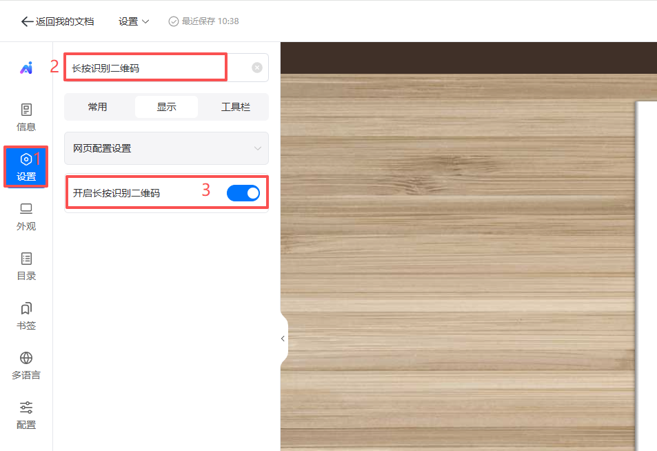 點(diǎn)擊左邊欄的【設(shè)置】,在搜索欄輸入“長(zhǎng)按識(shí)別二維碼”查找,勾選【開啟長(zhǎng)按識(shí)別二維碼】后即可長(zhǎng)按保存產(chǎn)品圖。